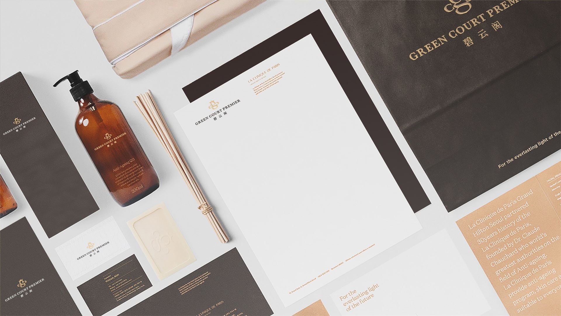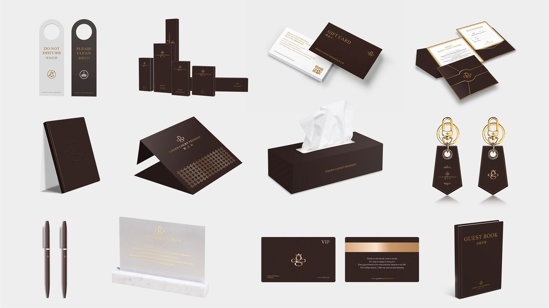 标志图形通过提炼英文品牌名首字母 “G”、“C”的品牌基因,构成奢华蜜蜂的符号,J9九游会象征碧云阁给予客户无微不至的服务和奉献精神。同时寓意碧云阁内部员工的勤劳素养及亲和形象。蜜蜂代表勤劳,服务;占位蜜蜂,即占位酒店服务。